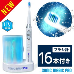 - 音波電動歯ブラシ UV除菌器&替えブラシ16本付!『ソニックマジック』音波歯ブラシ 口臭予防 歯周病予防 歯石予防 歯磨き オーラルケア デンタルケア 子供用 はぶらし ハブラシ